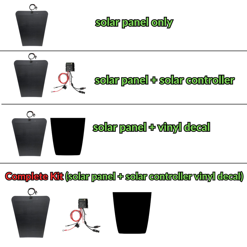 7. Easy to install plug-and-play wiring. The optional Plug-and-play 10A Waterproof MPPT solar controller. It comes pre-wired with fuses, terminals, and connectors. It features advanced MPPT control with intelligent protection against risks like reverse polarity and overcharging. Compatible with Sealed, AGM, Gel, Liquid, and Lithium-ion batteries.